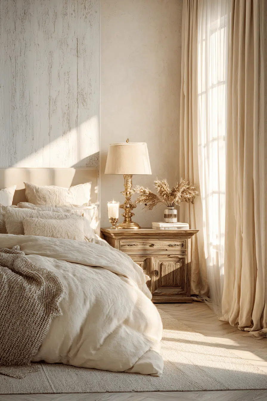 Serene cozy room beauty comes from soft bedding, warm wood, and soothing neutrals that make the whole bedroom feel calm and complete. These cute bedroom ideas create a timeless look that feels peaceful, polished, and deeply inviting. Bring this serene style into your room and start your refresh today.