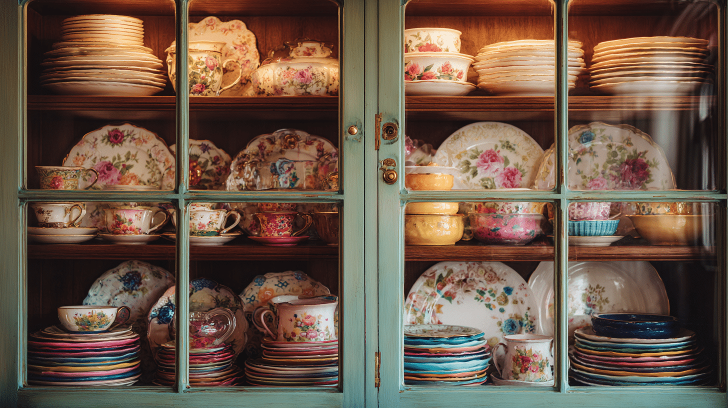 Vintage dishes and glassware can turn simple shelves into a colorful and nostalgic display. Layering beloved pieces in a vintage kitchen creates a collected look that feels personal, cheerful, and inviting. Start styling your shelves and make everyday storage feel extra special now.